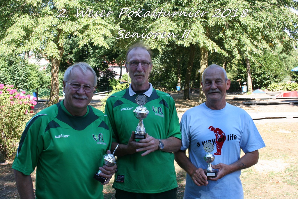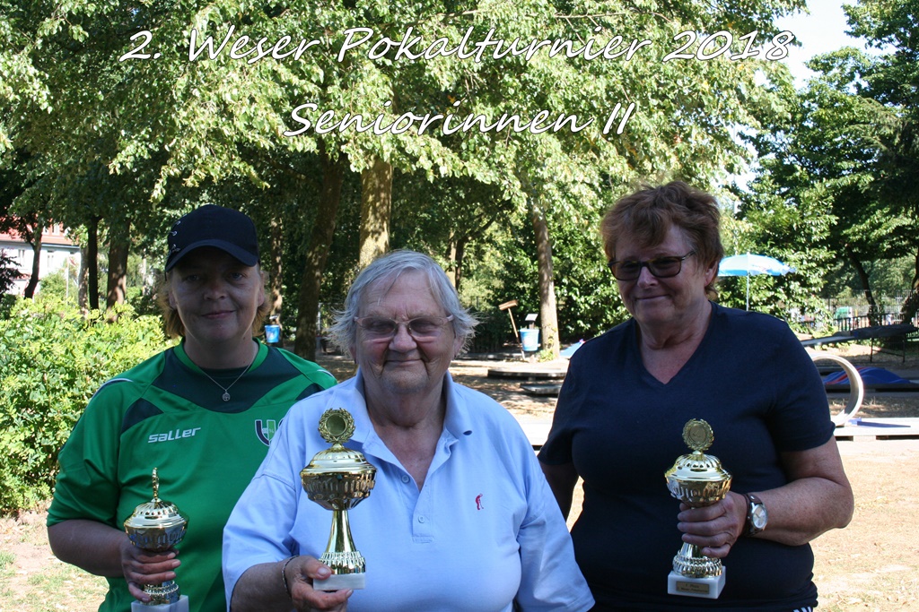 Reiner Neumann und Holger Fabry mussten dann auch in ihrer Alterskategorie „Senioren männlich“ ins Stechen um den Sieg, welches Reiner Neumann nach vier Bahnen an den Pyramiden für sich entscheiden konnte, besonders ärgerlich für Holger Fabry, denn in den regulären vier Runden hatte er dort immer geasst, doch im Stechen wollte der Ball nicht fallen. Weitere Stechen gab es um den 3. Platz der Kategorie „Senioren männlich“ zwischen Frank Mylius vom MGV Bremen und Matthias Erhart vom BGC Bremen, sowie in der Kategorie „Senioren weiblich“ zwischen Marion Mylius vom MGV Bremen und Petra Dahrendorf vom SV Lurup. Frank Mylius gewann das Stechen bereits an Bahn 1, der Mausefalle, Petra Dahrendorf konnte an Bahn 3, dem Mittelhügel, das Stechen für sich entscheiden. Als kleine Randnotiz sei zu erwähnen, dass Reiner Neumann, gemeinsam mit seiner Lebensgefährtin, als letzter die Party verlassen hatte, scheinbar war die Feier ein gutes Doping für ihn.